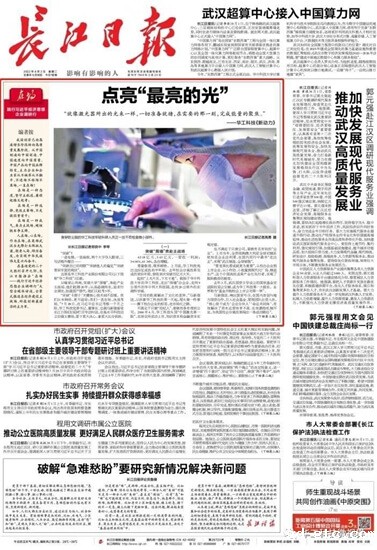 《长江日报》头版头条报道点点taptap官网下载科技点亮“最亮的光”