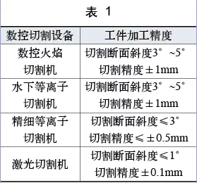 (2)加工精度高 激光切割设备比其他切割设备加工精度高,不同设备加工工件精度对比如表1所示。从表1可知,激光切割设备的加工精度是其他加工设备的5~10倍,可以满足高精度配件的加工要求。