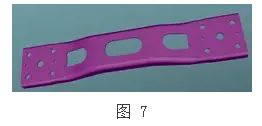 图7配件为货车K5摆动式转向架的弹簧托板。该配件原材质为Q550,板厚为10mm,且该配件孔的形状尺寸及定位尺寸精度较高,孔的形状较多。