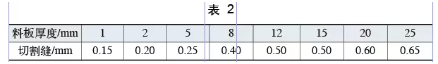 (3)割缝宽度较窄 割缝细小有利于减小配件的间距,提高材料利用率,切割时产生的切割渣较少,其切割参数如表2所示。而大部分数控精细等离子切割机的割缝宽度在0.15~6mm之间,在实际生产中等离子切割机的割缝宽度一般在5~6mm。